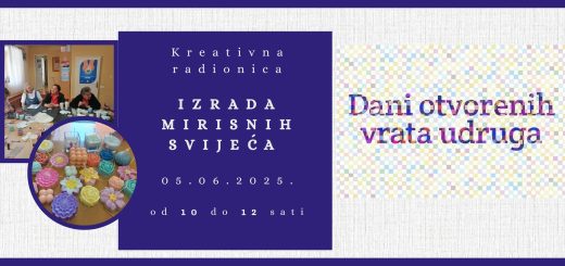 Nastavljamo sa provedbom treće godine našeg projekta „Želim, mogu i hoću – nema mjesta za samoću“ te nastavljamo s aktivnostima koje promiču međusobno povezivanje, savjetovanje i informiranje te uključivanje osoba starije životne dobi u društveni život zajednice.